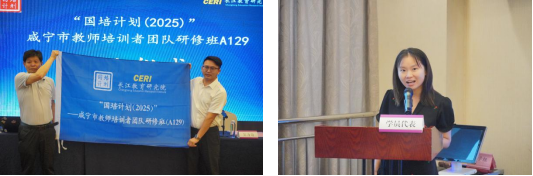 来自赤壁市实验外国语学校的刘莎莎老师作为学员代表发言。表示倍加珍惜这次来之不易的学习机会,真诚地聆听、感受、思考和表达。将以水的姿态,开启这段充实的学习之旅;以“天一生水”的敬畏之心沉静聆听,清空自己,接纳新知,让专家的智慧滋润我们的心田;以“海纳百川”的包容之心坦诚交流,如溪流汇合,不急不躁,让思维的火花在碰撞中泛起层层涟漪。