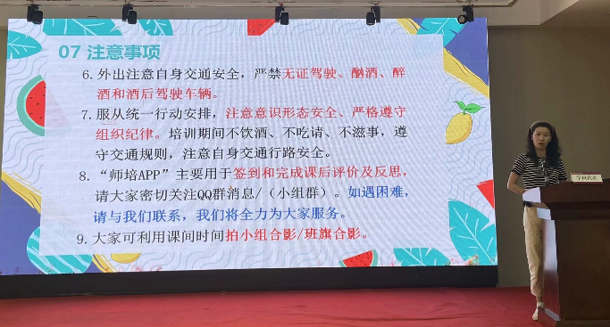最后,培训班主任党煜老师对培训的整体安排、班级管理和学习要求进行说明。希望全体学员克服困难,端正态度,潜心学习,积极交流,按时完成各项学习任务;严格遵守政治纪律、学习纪律和生活纪律。特别提醒学员注意个人意识形态和人身财产安全。