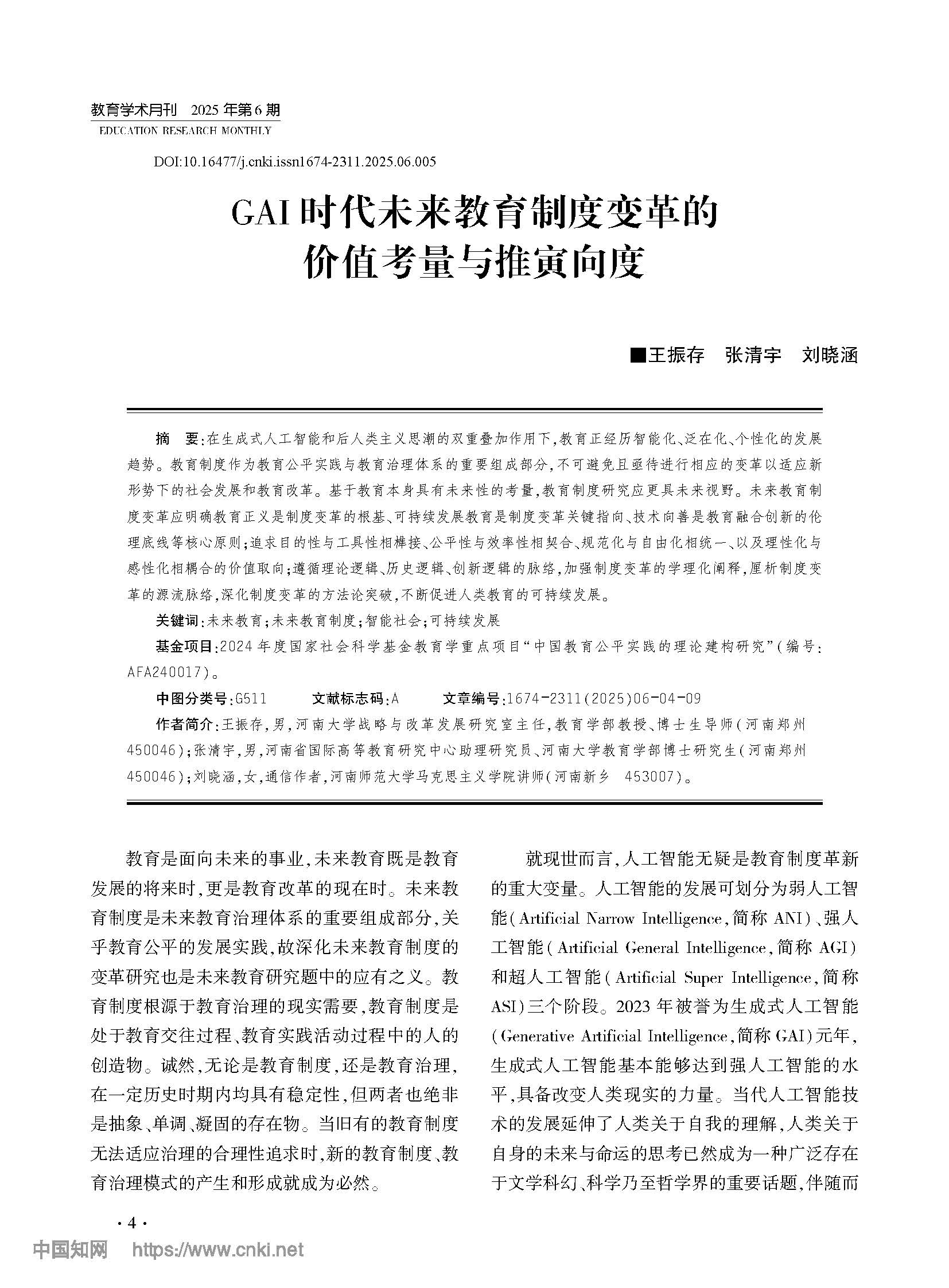 王振存 | GAI时代未来教育制度变革的价值考量与推寅向度