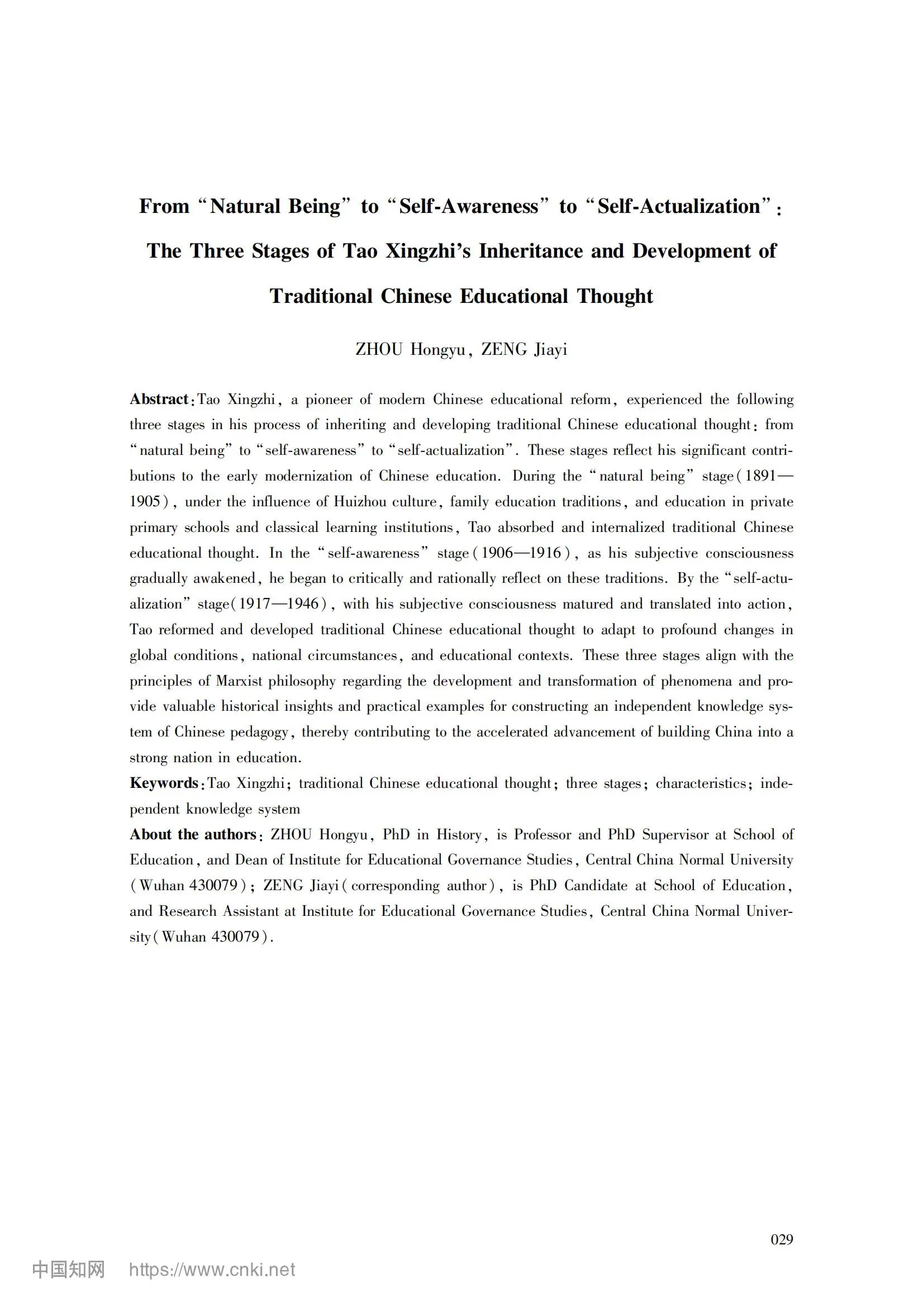 周洪宇 从“自在”到“自觉”再到“自为”:陶行知继承与发展中国传统教育思想的三重境界