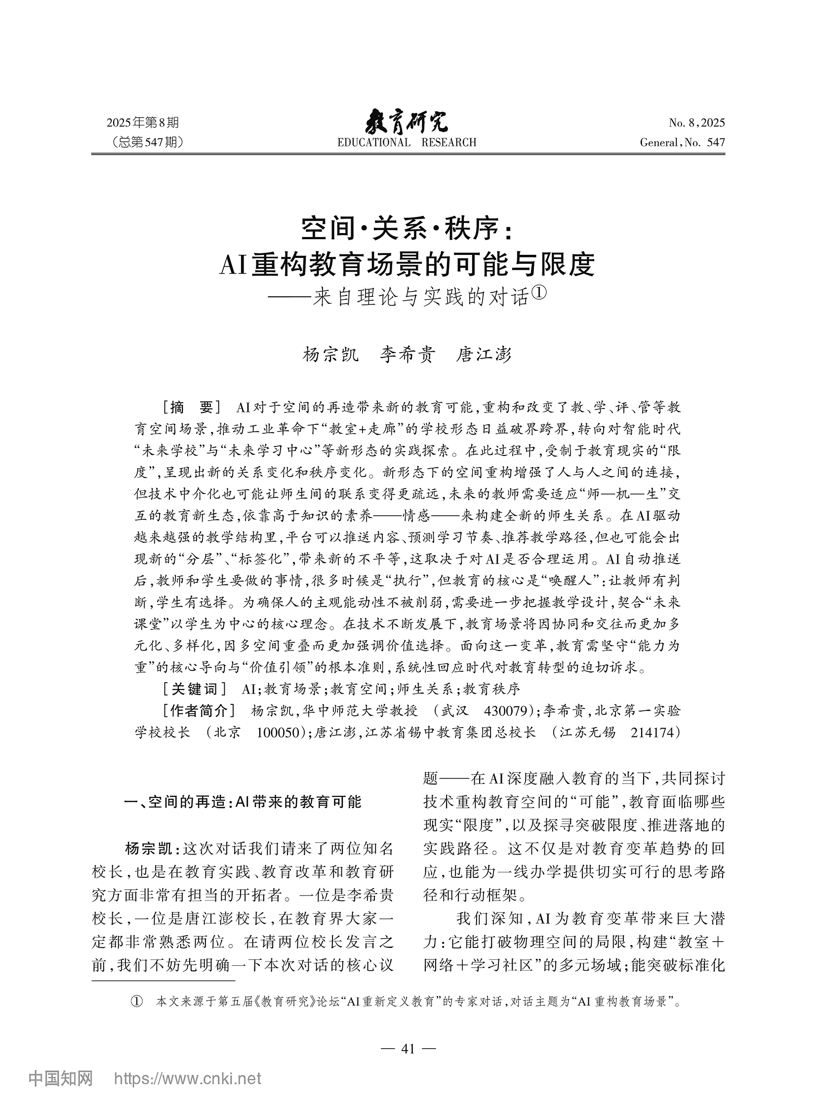 杨宗凯 | 空间·关系·秩序:AI重构教育场景的可能与限度