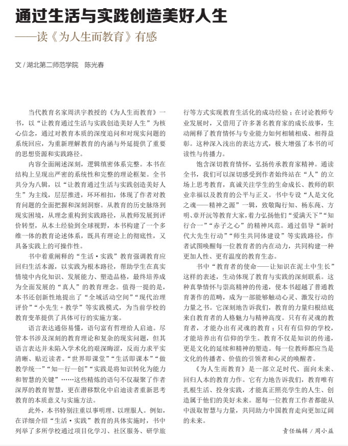 陈光春 | 通过生活与实践创造美好人生——读《为人生而教育》有感