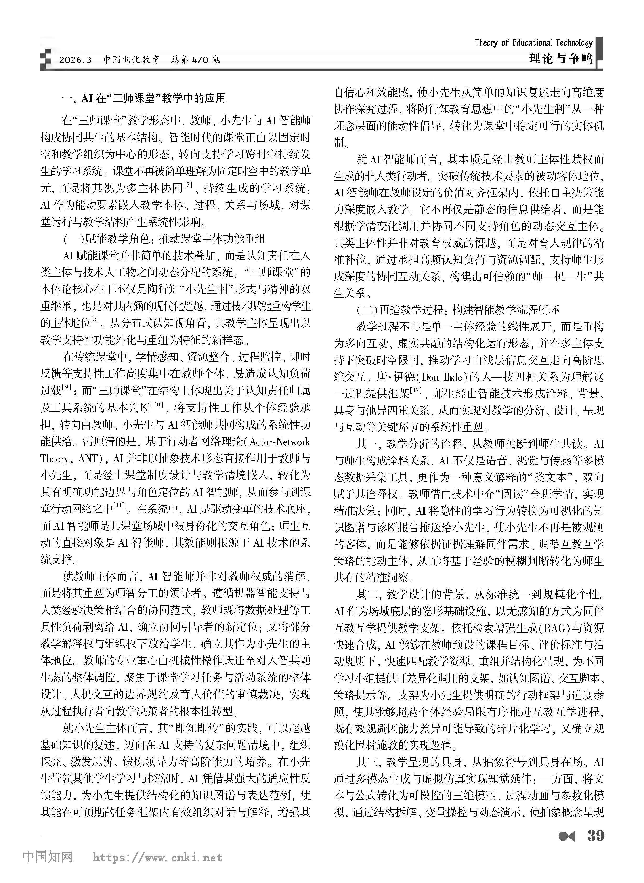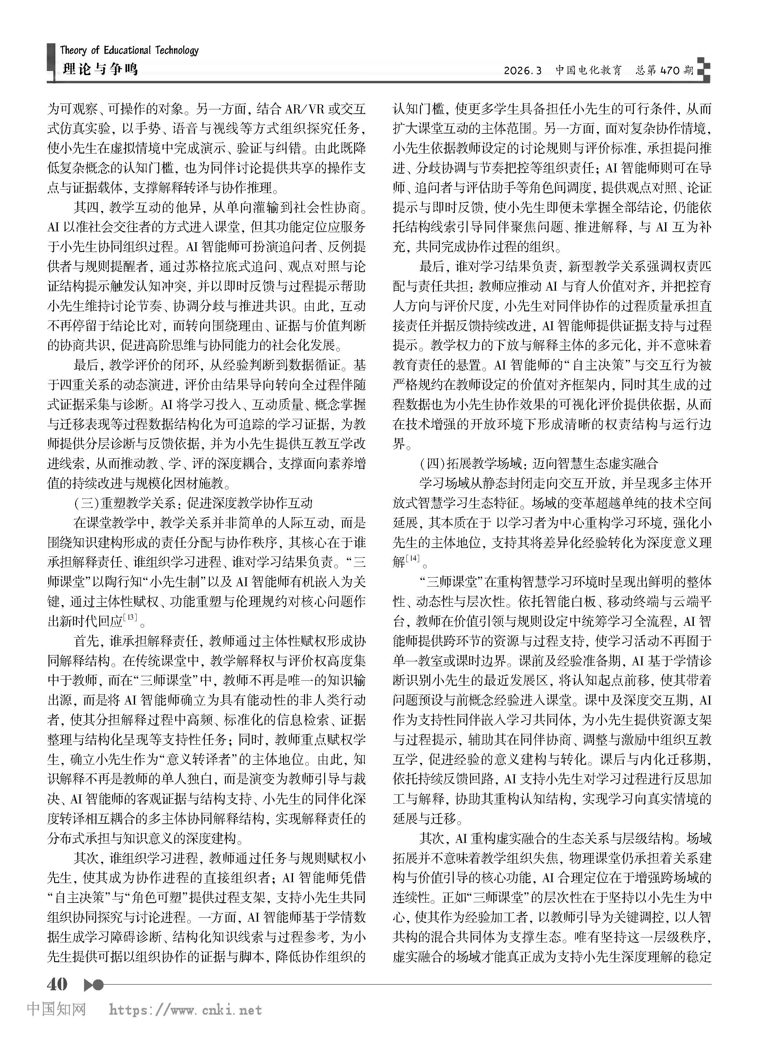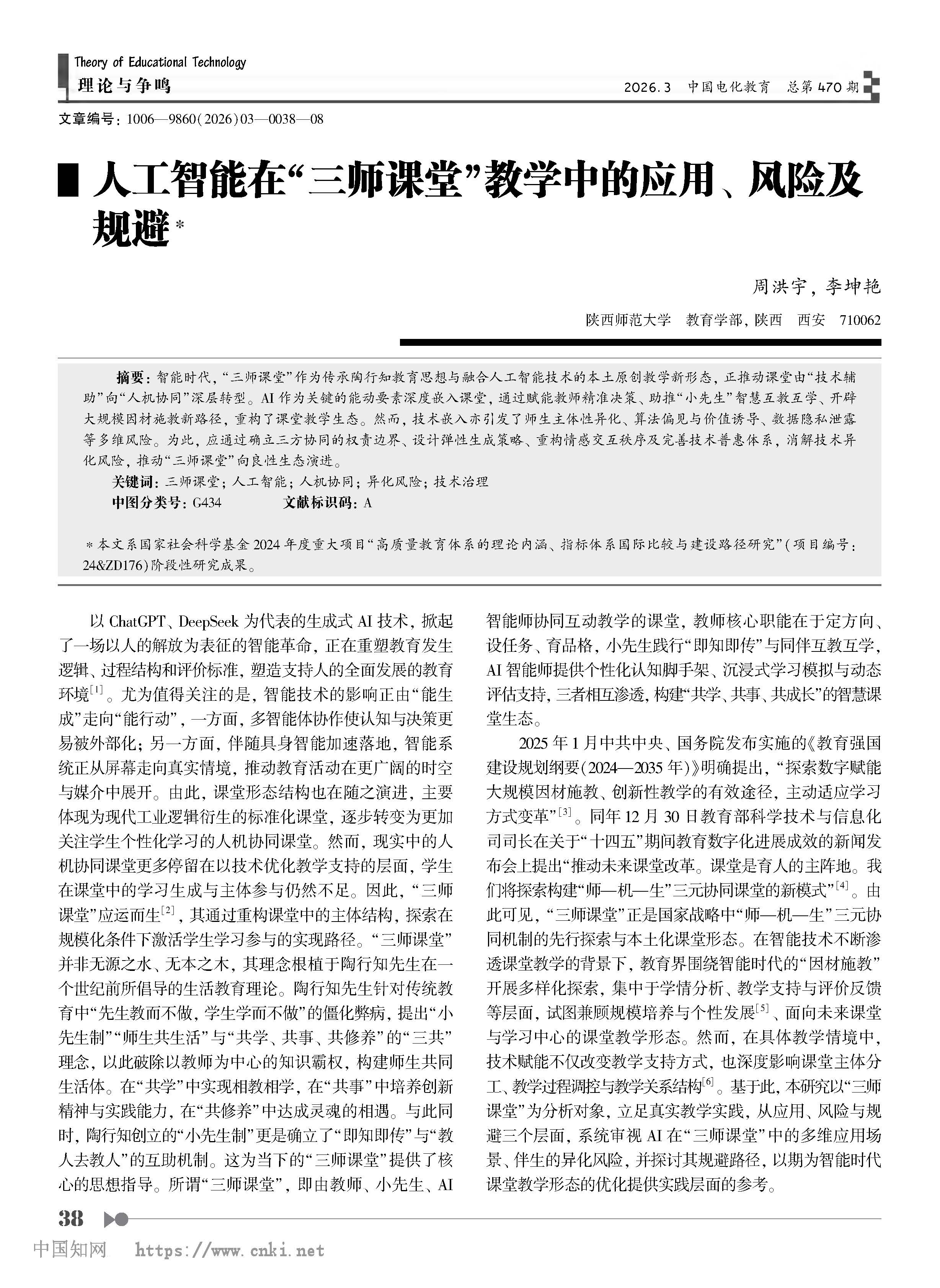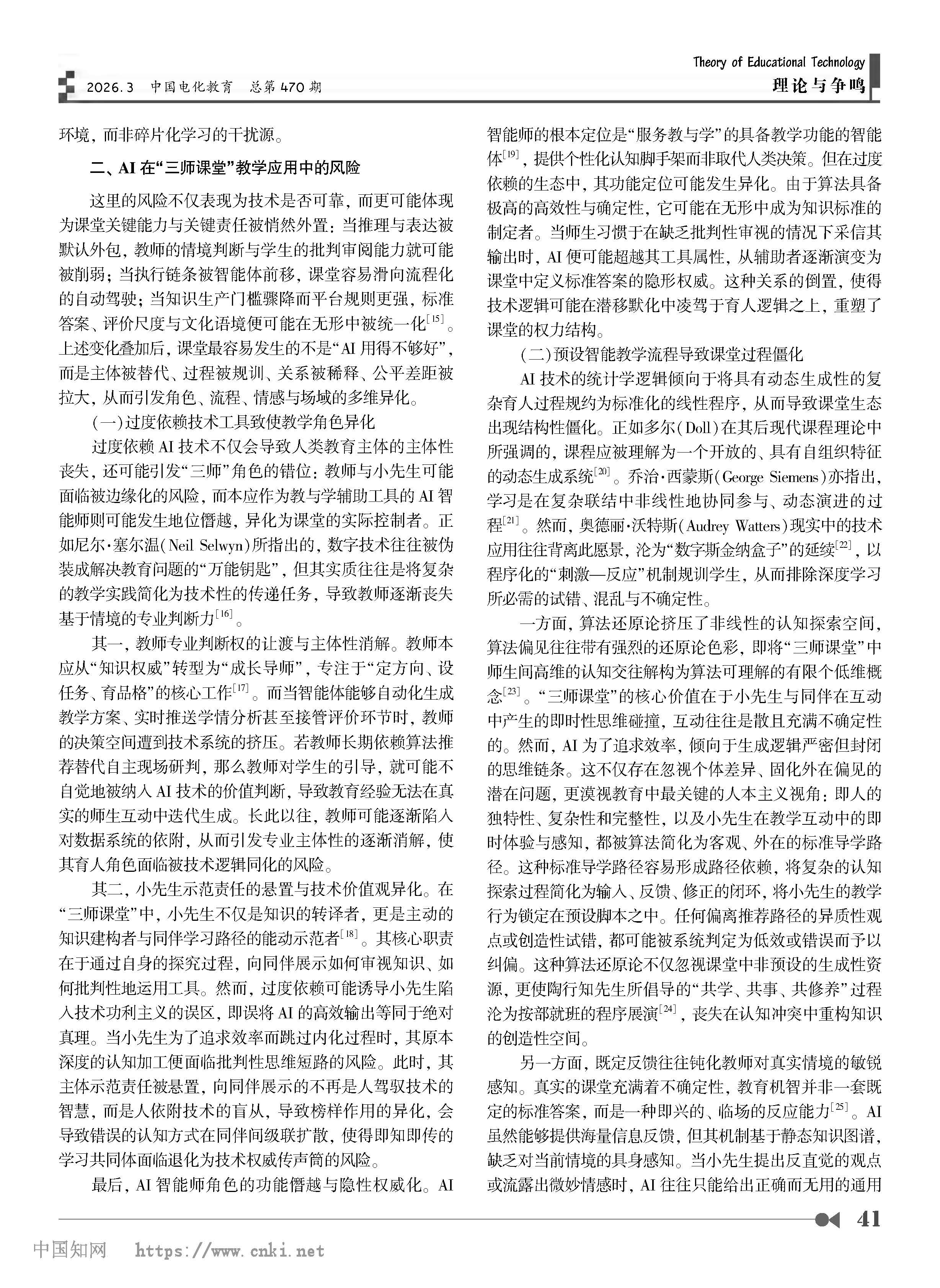 周洪宇 | 人工智能在“三师课堂”教学中的应用、风险及规避