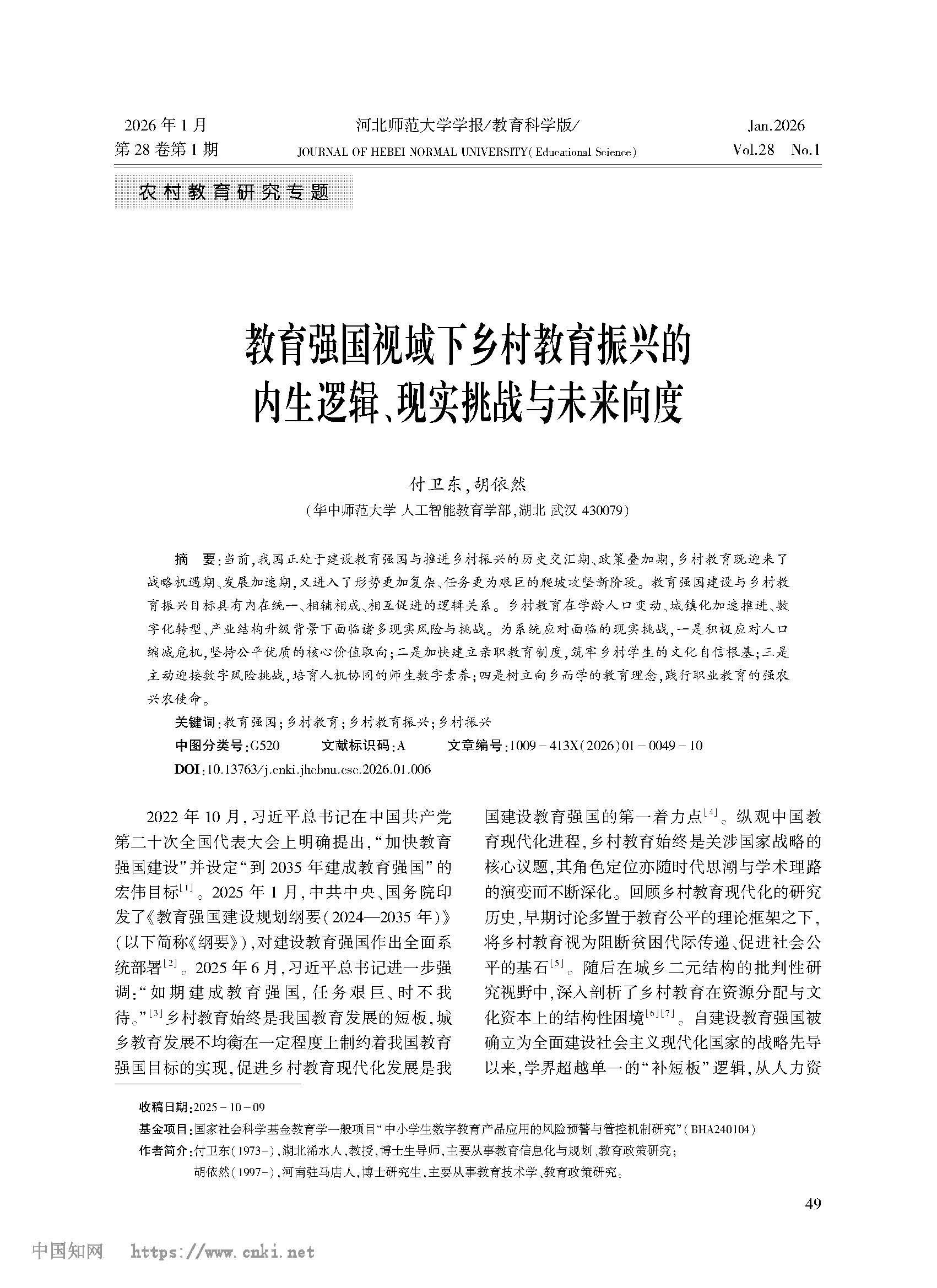 付卫东 | 教育强国视域下乡村教育振兴的内生逻辑、现实挑战与未来向度