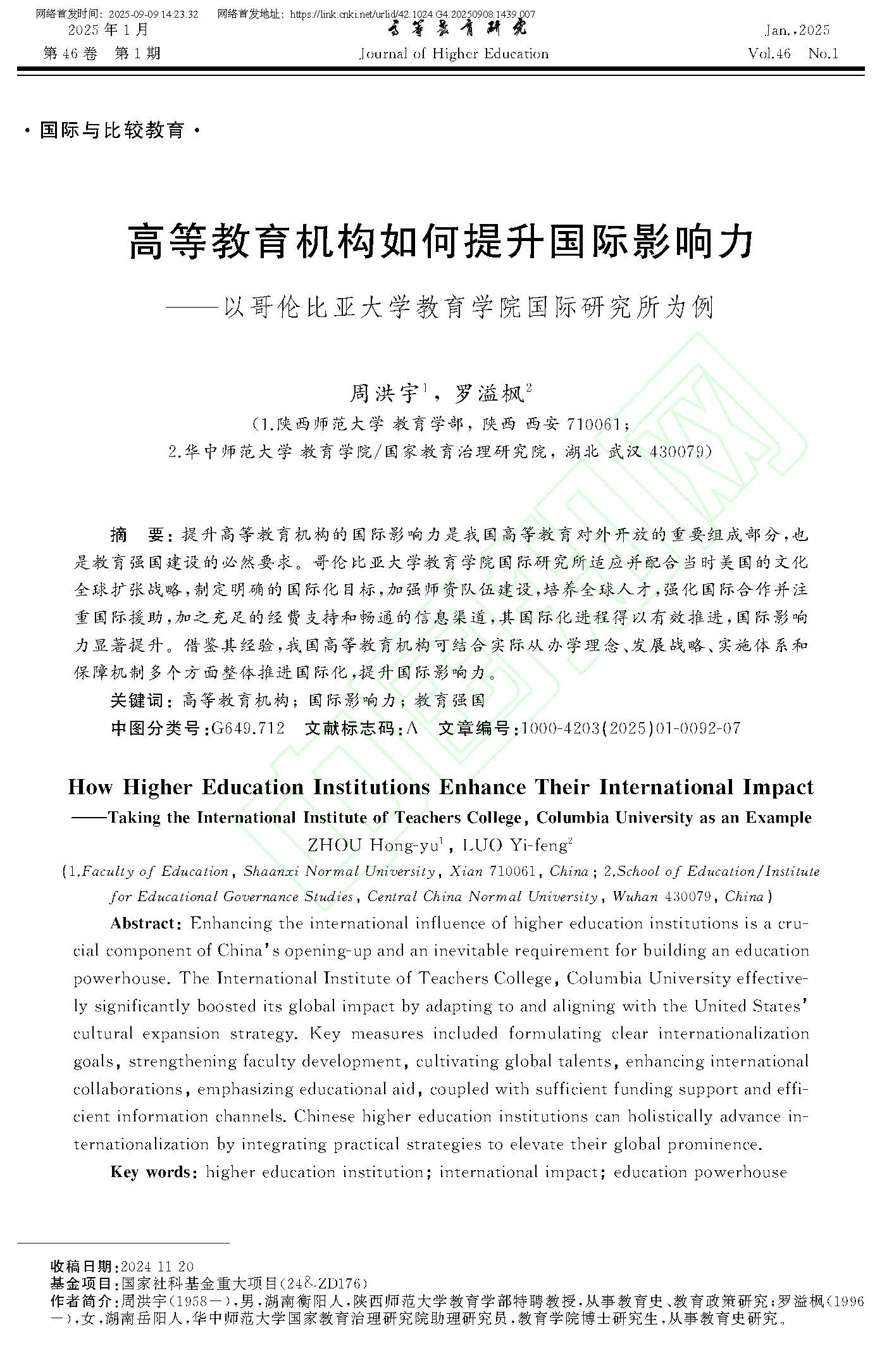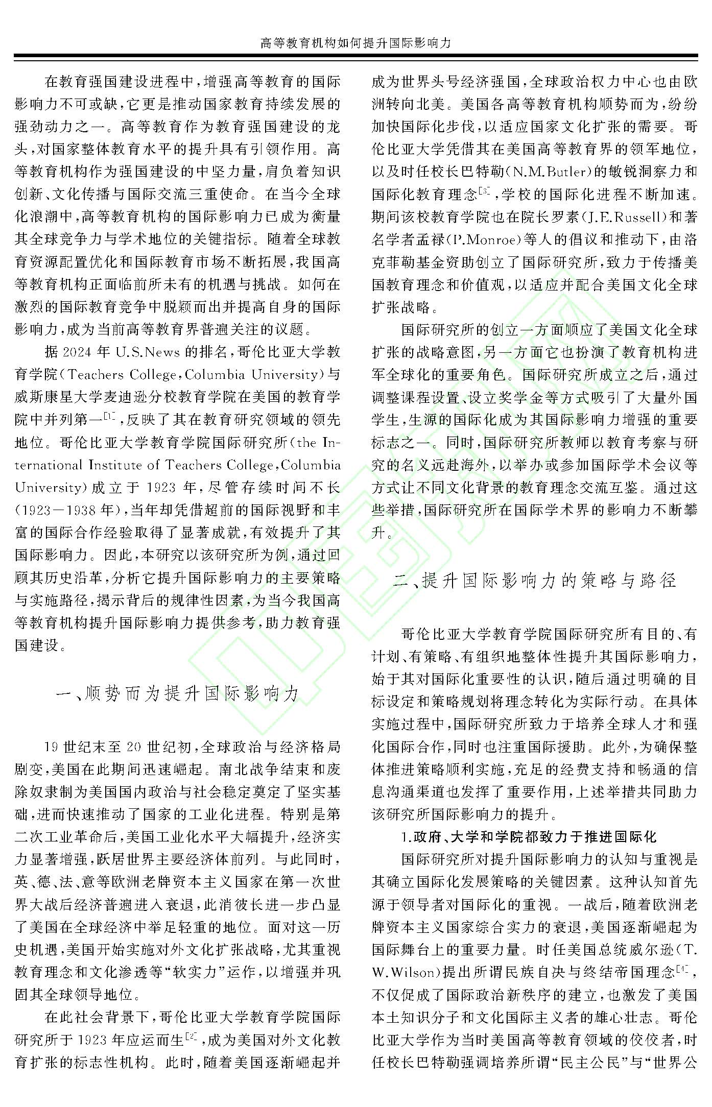 周洪宇 | 高等教育机构如何提升国际影响力——以哥伦比亚大学教育学院国际研究所为例