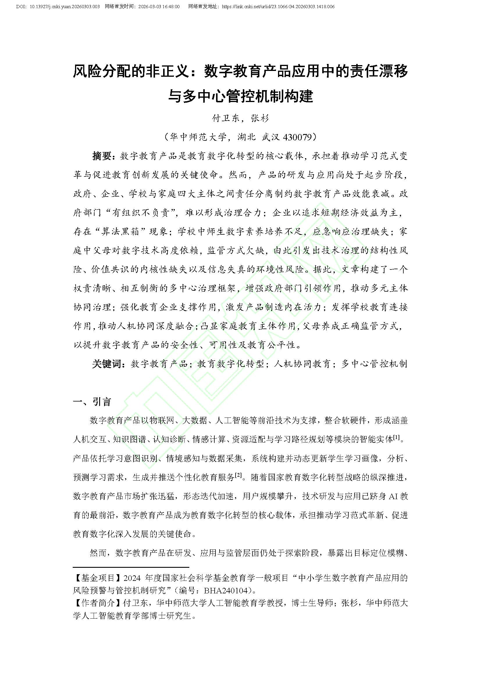 付卫东 | 风险分配的非正义:数字教育产品应用中的责任漂移与多中心管控机制构建
